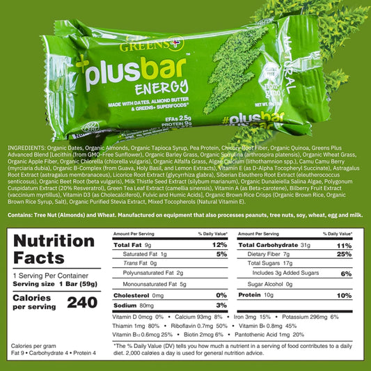 Organic Greens Energy Bar with Natural Energy Boost | Gluten Free | Non GMO | Vegan | 12 Bars