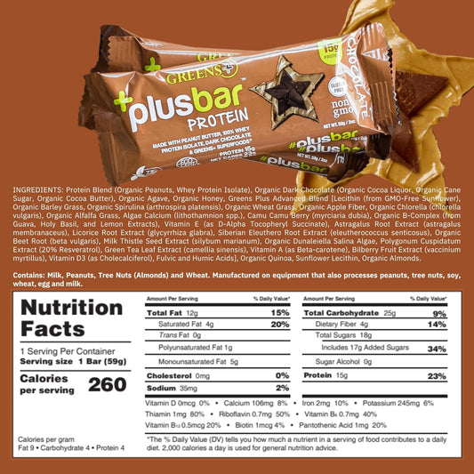 Organic Super Greens Dark Chocolate Protein Bars with Whey Isolate - Gluten Free & Vegan Meal Replacement Snacks (12 Bars)