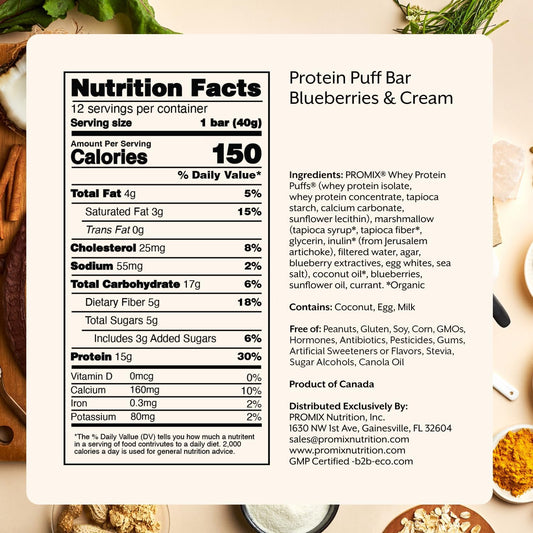 ProMix Blueberries & Cream Protein Puff Bars 12-Pack - Marshmallow Crispy Treat - High Protein Low Calorie On-The-Go Snack - Non-GMO Gluten Soy Corn-Free
