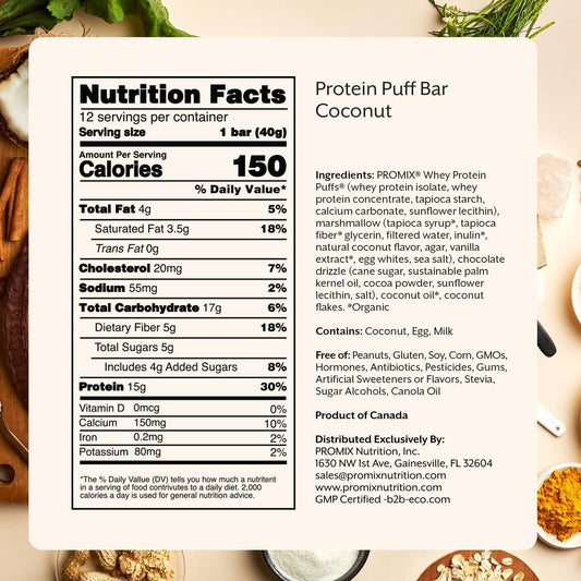 Promix Coconut Marshmallow Protein Puff Bars - 12 Pack - Healthy On-The-Go Snack - High Protein, Low Calorie, Non-GMO