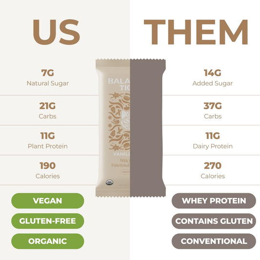 USA-Made Organic Vegan Protein Bars with Adaptogens & Superfoods - 1500mg Lions Mane, Chaga, Reishi, Cordyceps - Plant Protein Bars - Vanilla Chai