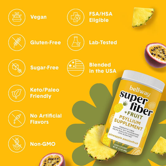 Bellway Super Fiber Powder with Pineapple Passion Fruit Flavor - Collagen Enriched Strawberry Lemonade Packets