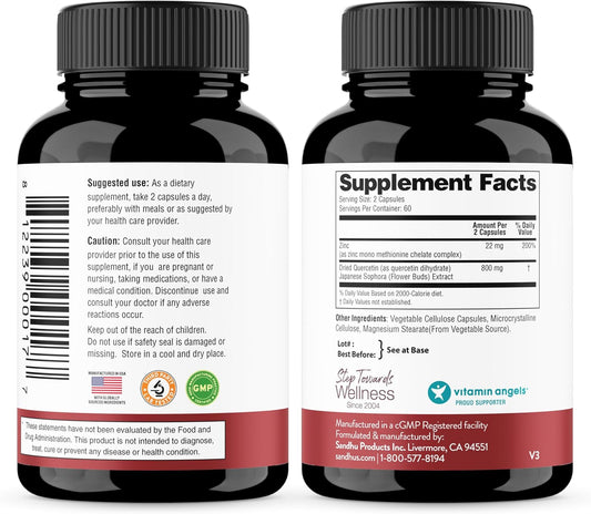120 Ct (2 Pack) Sandhu's Vegetarian Capsules with Zinc and Quercetin