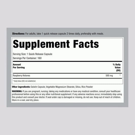 500mg Raspberry Ketones | 160 Capsules | Non-GMO & Gluten Free Formula by Piping Rock