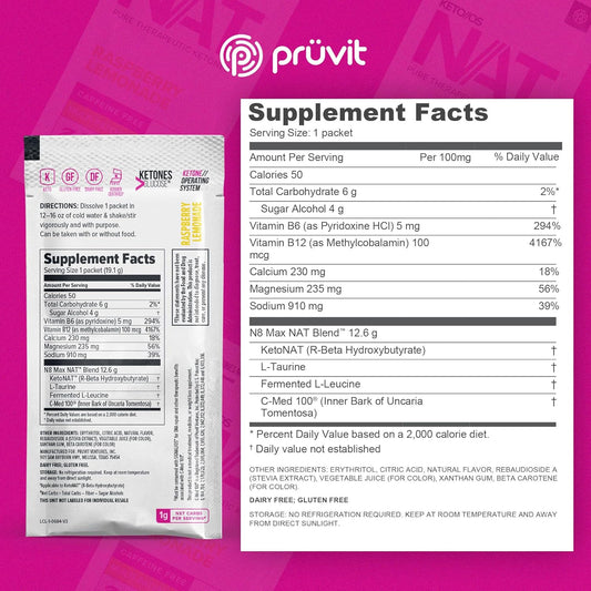 PRÜVIT Keto//OS NAT® Raspberry Lemonade Exogenous Ketones BHB Salts Supplement - Caffeine Free Energy Boost for Workout - Keto Supplement for Men and Women (20 Count)
