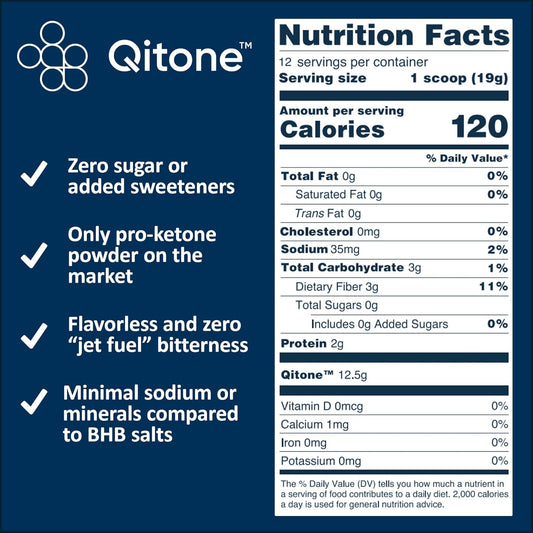 Qitone BHB Exogenous Ketones Powder - Ketone Ester Coffee Creamer Alternative for Rapid Ketosis, Brain Boost & Energy Boost - 0 Sugar, Unflavored - 12 Servings