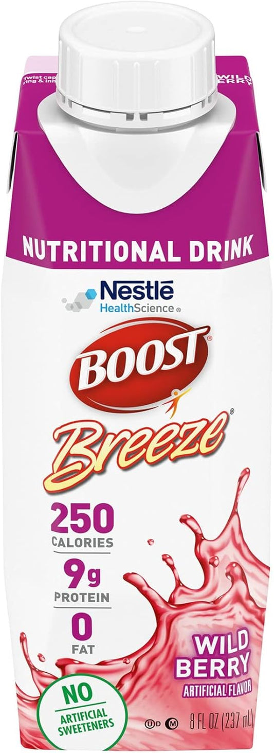 Nutrient-Rich Protein Drinks Variety Pack - Boost Breeze Wild Berry & Ensure Clear Mixed Fruit, Pack of 12, 8 fl oz & 10 fl oz