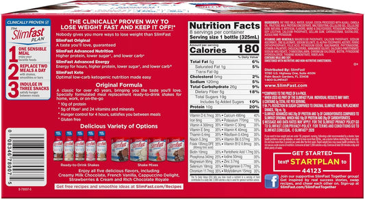 SlimFast Rich Chocolate Royale Meal Replacement Shake - 10g Protein, Ready to Drink for Slimming Formula - 11 Fl. Oz, 8 Pack