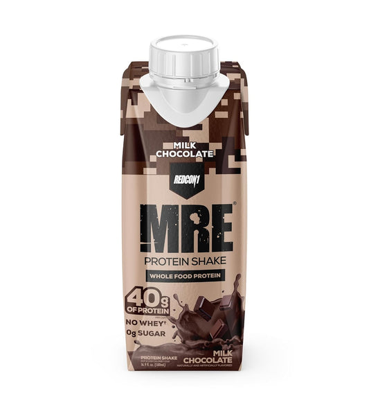 Redcon1 MRE Milk Chocolate Protein Shakes - 40g Real Whole Food Protein Blends, Lactose & Whey Free RTD, Keto-Friendly Nutritional Shake (12 Pack)