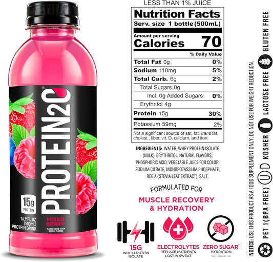 Protein2o Mixed Berry Whey Protein Water, 15g Protein, 16.9 oz Bottle - Pack of 12