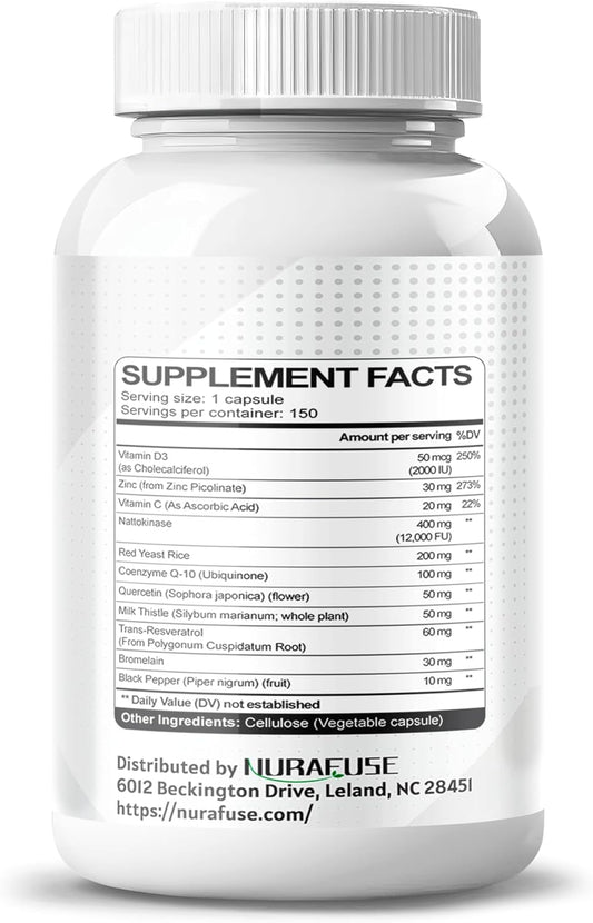 11-in-1 Nattokinase Supplement with Red Yeast Rice, Coenzyme Q-10, Quercetin, Milk Thistle, Resveratrol - Non-GMO, Gluten-Free, Soy-Free FormulaVendor:NURAFUSERegular price $107.34 AUDRegular priceUnit price / per-