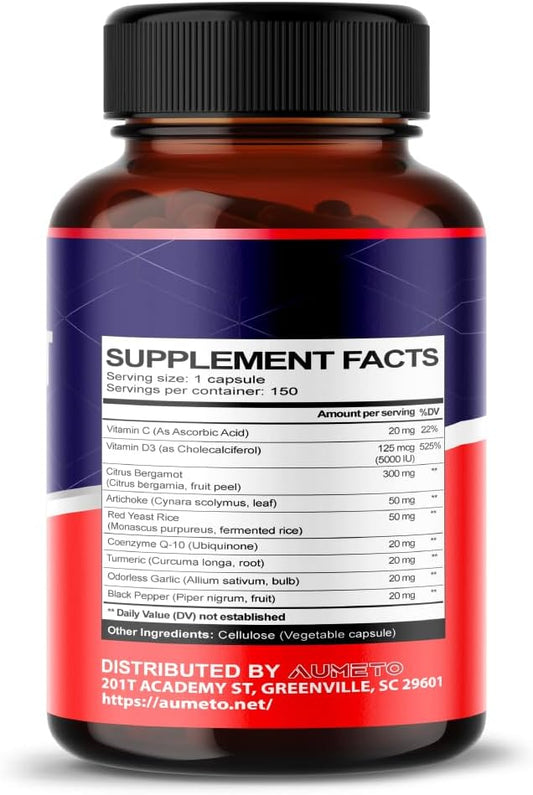 Citrus Bergamot Supplement with Red Yeast Rice, CoQ10, Artichoke, Vitamin D3 - Promotes Circulation and Immune Health (150 Count)Vendor:AUMETORegular price $112.28 AUDRegular priceUnit price / per-