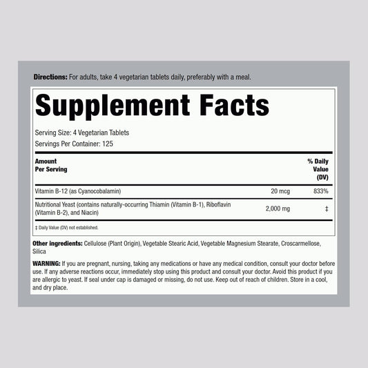 500 Piping Rock Nutritional Yeast Tablets with Vitamin B12 Complex | Non-GMO Supplement