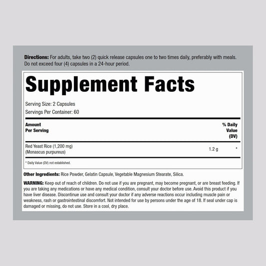 120 Capsules Pure Naturals Red Yeast Rice Supplement - 1200 Mg per Serving | Non-GMO, Gluten Free, Made in USA
