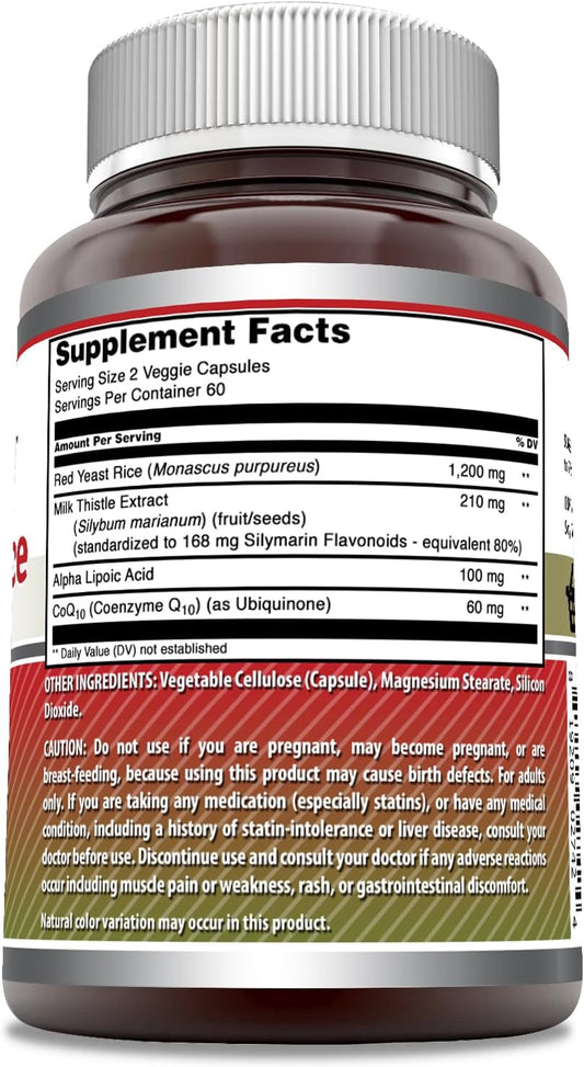 Red Yeast Rice Complex with Alpha Lipoic Acid, CoQ10, Milk Thistle Extract - 120 Veggie Capsules | Made in USA | High Potency 1570 Mg Per Serving