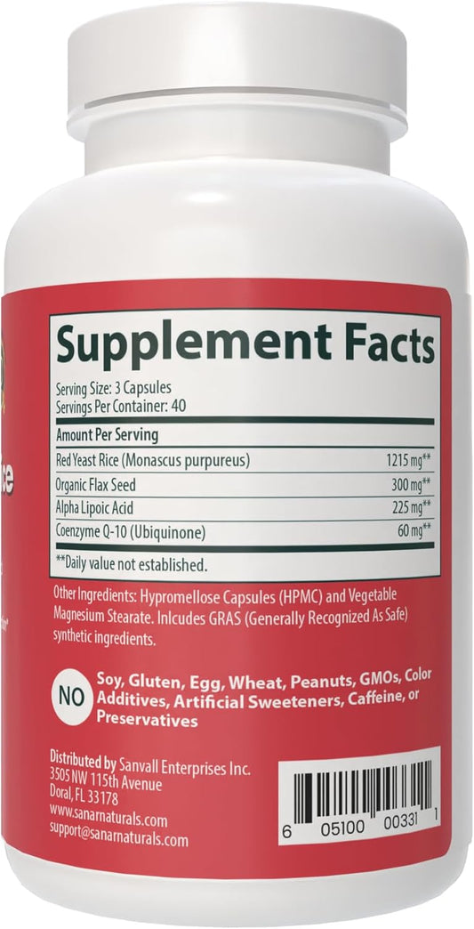 Sanar Naturals Red Yeast Rice and CoQ10 Supplement for Heart Health - Energy Boost, Stamina Support - Non-GMO, Gluten Free, Vegan - 120 Capsules