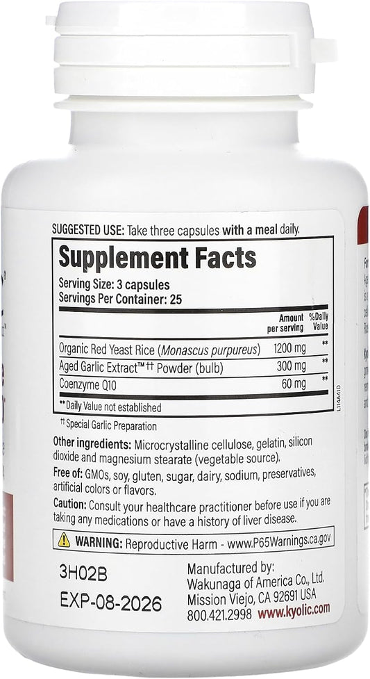 Aged Garlic Extract Formula 114 with Red Rice Yeast & Coq10, 75 Capsules - Enhanced Heart Health Supplement