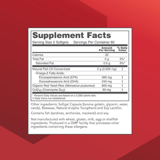 Heart Health Formula with Red Yeast Rice, CoQ10, Omega-3 Fish Oil - DHA Supplements by Protocol for Life Balance