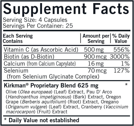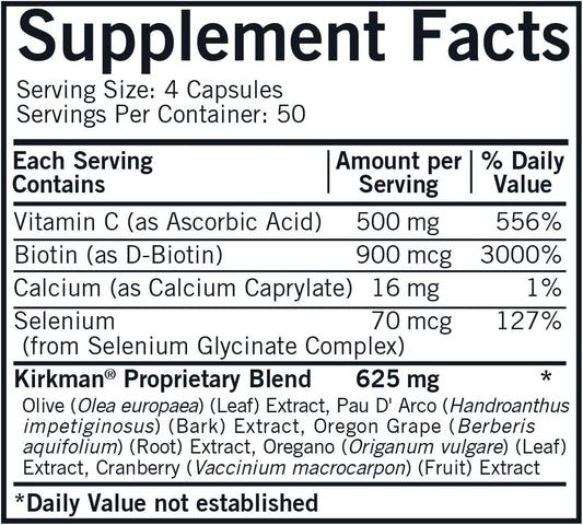 Kirkman Yeast Aid Advanced Formula 200 Capsules for Immune System Support and Yeast Control - Hypoallergenic