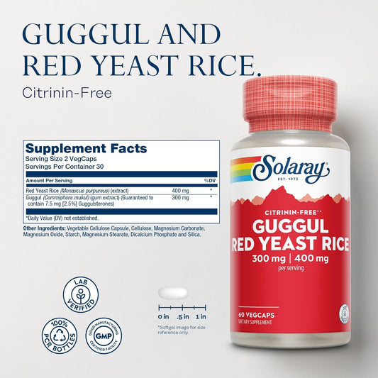 SOLARAY Guggul Gum Extract & Red Yeast Rice Capsules for Cardiovascular Support | Ancient Chinese & Ayurvedic Combo | 60 Count