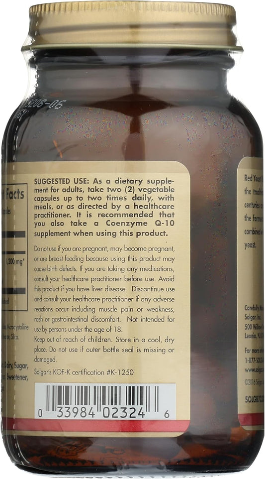 Solgar Red Yeast Rice Capsules - 60 Count, Vegetarian-Friendly Supplement