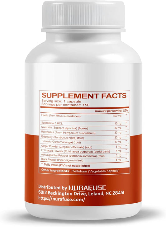 NURAFUSE Fisetin 10-in-1 Formula with Spermidine, Quercetin, Resveratrol, Elderberry, Turmeric - Non-GMO, Gluten-Free, Soy-Free