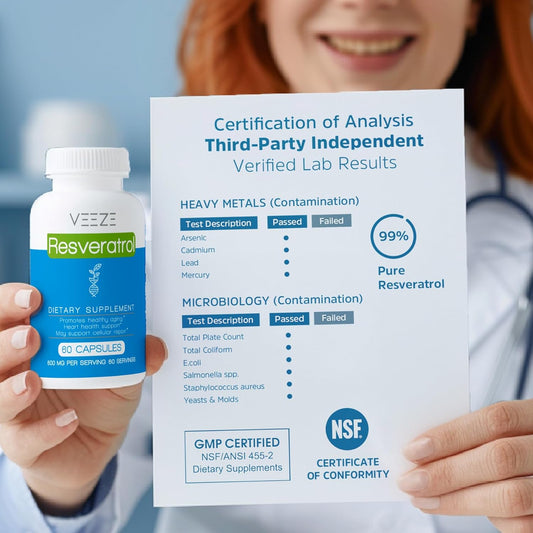 Organic VEEZE Resveratrol Supplement 600mg - USA Made, 60 Capsules - Antioxidant Rich with Trans Resveratrol for Well-Being Support