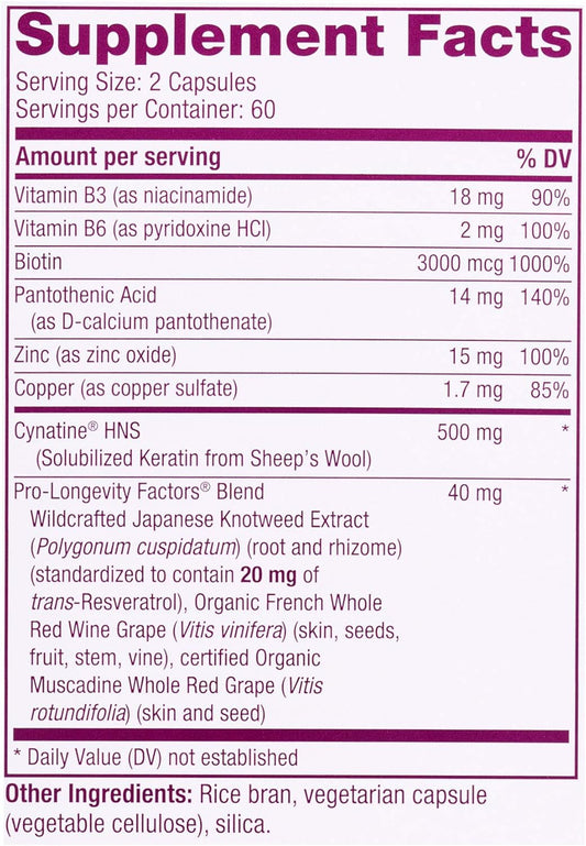 Reserveage Beauty Keratin Hair Booster with Biotin & Resveratrol 500mg Supplement for Hair Growth and Healthy Aging, 120 Capsules