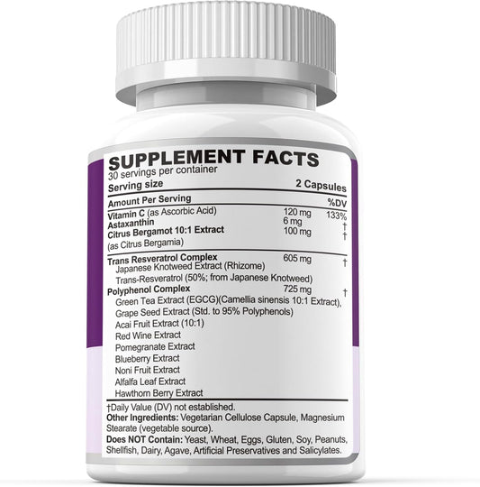 High Potency 600mg Resveratrol Capsules - Anti-Aging Antioxidant Supplement for Health Support - 120 Count