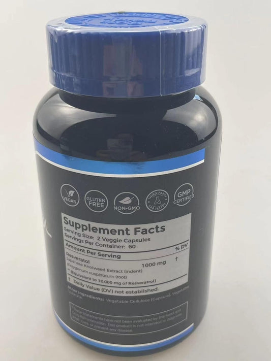 High Potency Resveratrol Capsules with Lions Mane - 10000mg Supplement for Enhanced Health
