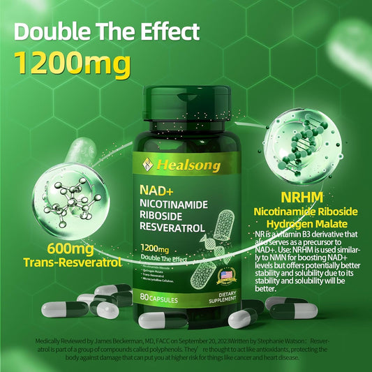Liposomal Nicotinamide Riboside & Resveratrol NAD+ Supplement for Anti-Aging & Energy Boost - 80 Capsules