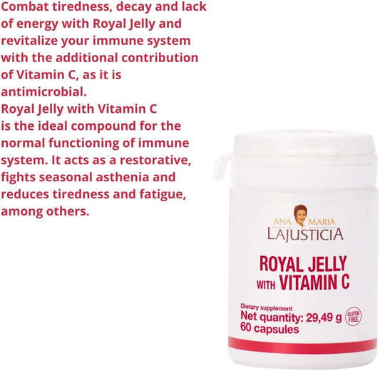 Ana Maria Lajusticia Royal Jelly with Vitamin C Capsules - 60 Count, Dairy and Gluten Free, Vegetarian Friendly for Vascular Health
