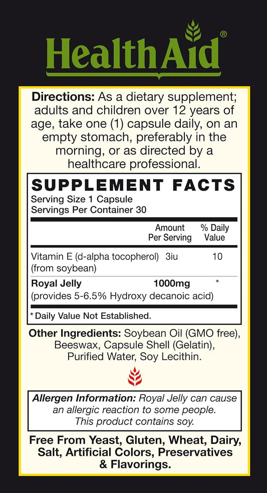 Tang Royal Jelly 1000mg Softgel Capsules by HealthAid for Overall Health Support - 30 Capsules