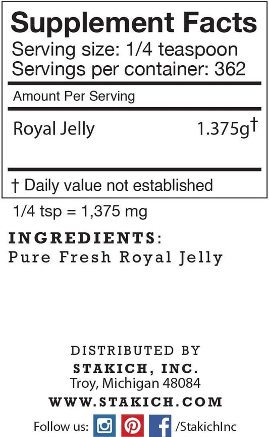 Stakich Pure Fresh Royal Jelly - All Natural with No Additives or Preservatives - 16 Ounce (1 Pound)