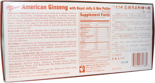 Prince Of Peace American Ginseng with Royal Jelly and Bee Pollen - 10 Vials