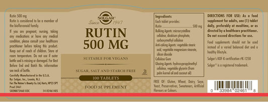 Solgar Rutin 500 mg Tablets - Antioxidant Bioflavonoid Supplement - Vegan, Gluten-Free, Dairy-Free, Kosher - 100 Servings