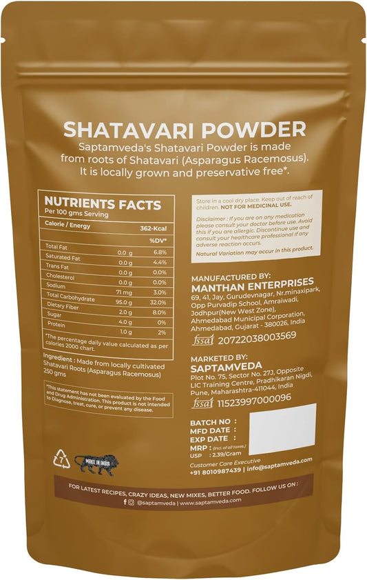 Shatavari Powder 8.81 oz - Pack of 1 - Made from Asparagus racemosus - SAPTAMVEDA