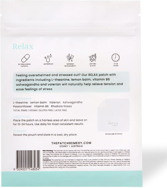 30 Relax Patches with Ashwagandha, L-theanine, Lemon Balm, Valerian - Stress Relief & Relaxation Patch with Vitamin B6 & Rhodiola Rosea