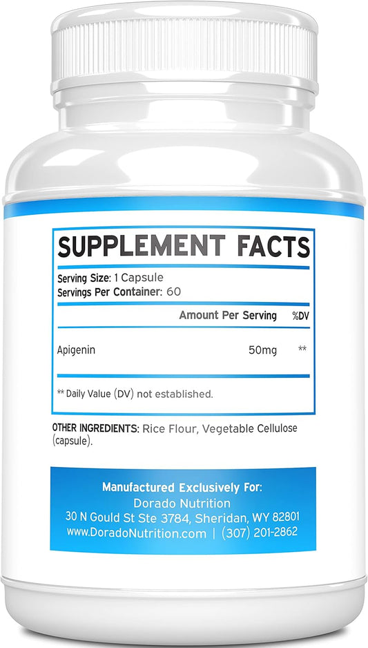 Apigenin Supplement 50mg Capsules - Pure Bioflavonoid from Chamomile - USA Made - Gluten Free, Non-GMO, Vegan - 60 Count