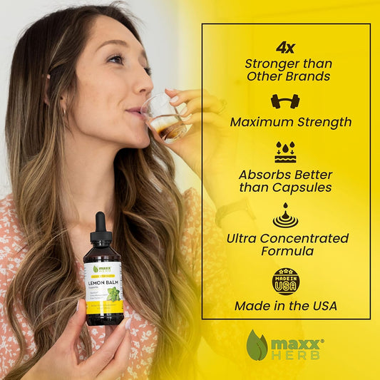 Maxx Herb Lemon Balm Extract - High Potency Liquid Tincture for Stress Relief and Nervous System Support - Alcohol-Free Formula - 4 Oz Bottle