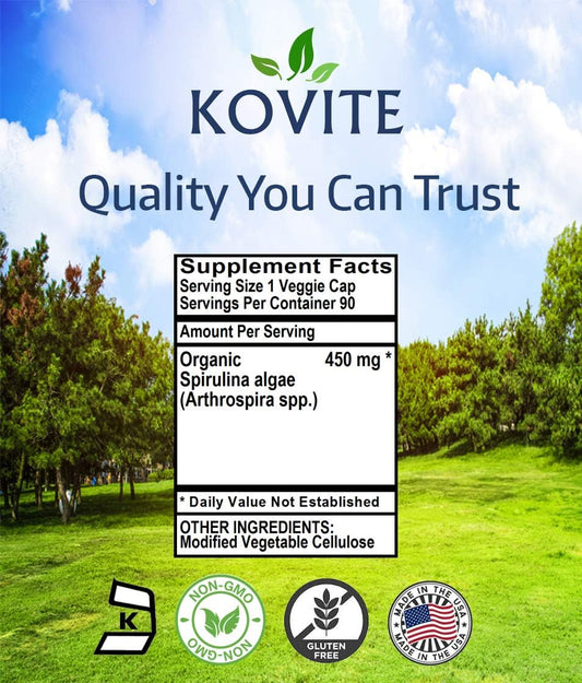Organic Kosher Vegan Spirulina Capsules - 90 Vegetable Capsules with 450mg PowderVendor:KoviteRegular price $101.78 AUDRegular priceUnit price / per-