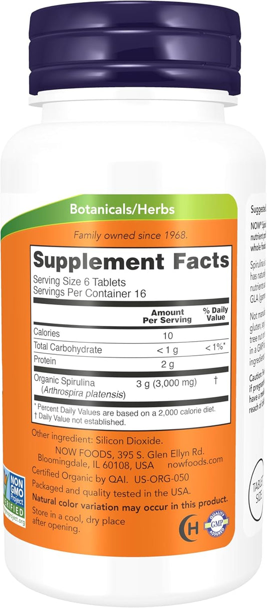 Organic Spirulina 500mg Supplement with Vitamins, Minerals, and GLA - 100 Tablets by NOW FoodsVendor:NOW FoodsRegular price $81.36 AUDRegular priceUnit price / per-