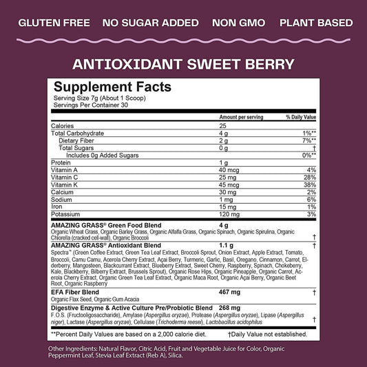 Organic Spirulina & Elderberry Greens Superfood Antioxidant Powder with Probiotics - Sweet Berry Flavor, 15 ServingsVendor:Amazing GrassRegular price $124.51 AUDRegular priceUnit price / per-