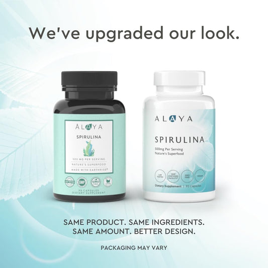Alaya Naturals Earthrise Spirulina Capsules - Non-GMO Vegan Superfood - 500 mg, 90 Capsules