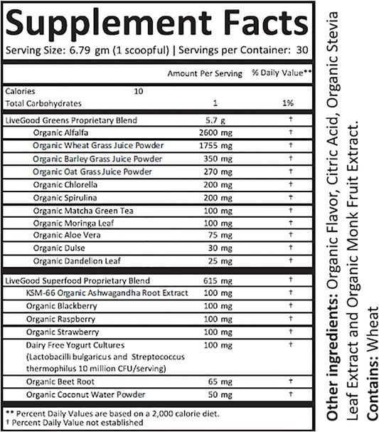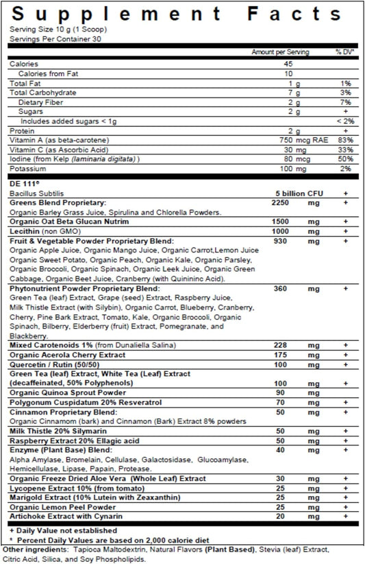 Organic Super Greens Powder with Wheat, Barley, Oat Grass, Matcha Green Tea, Aloe Vera - Vegan, Gluten Free - 7.2 oz.