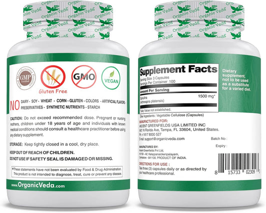 1500mg Organic Veda Spirulina Capsules - Green Superfood Supplement - Nutrient-Rich Blue-Green Algae - 300 Vegan Capsules