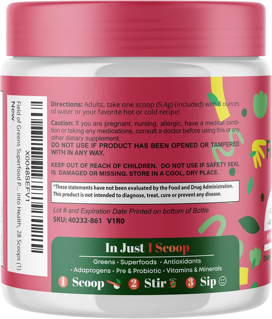 Organic Superfood Powder with Probiotics for Gut Health & Immunity, Plant-Based Mix with Spirulina, Chlorella, Beet Root Powder - Mixed Berry Flavor, 28 Servings