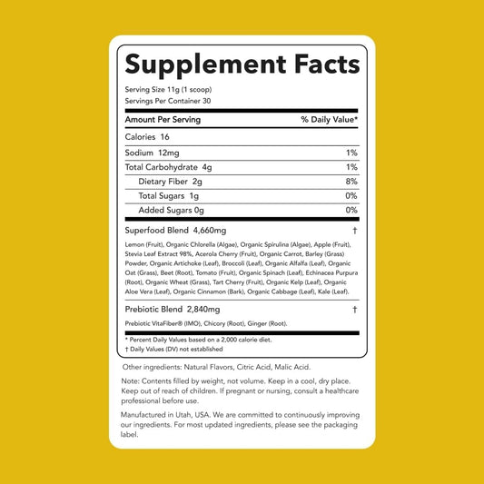 Sweet Lemon Greens Powder Mix - Superfood Smoothie & Juice Mix with Chlorella & Spirulina - Gluten Free & Organic (30 Servings)
