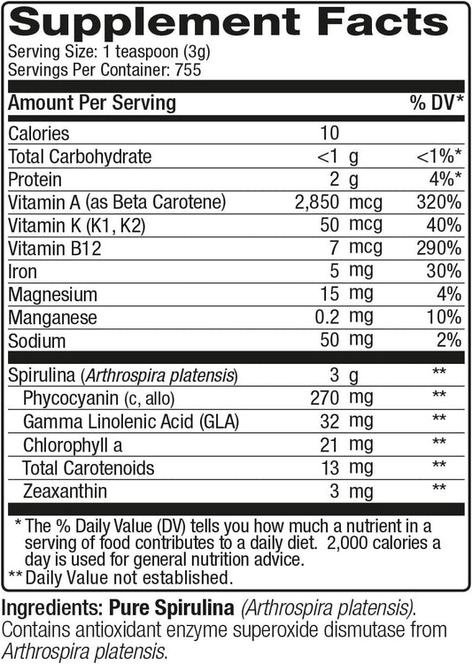 Organic Spirulina Powder for Immune Support & Antioxidants | Non-GMO & Filler-Free | High Protein Vegan Supplement (3.52 Oz)