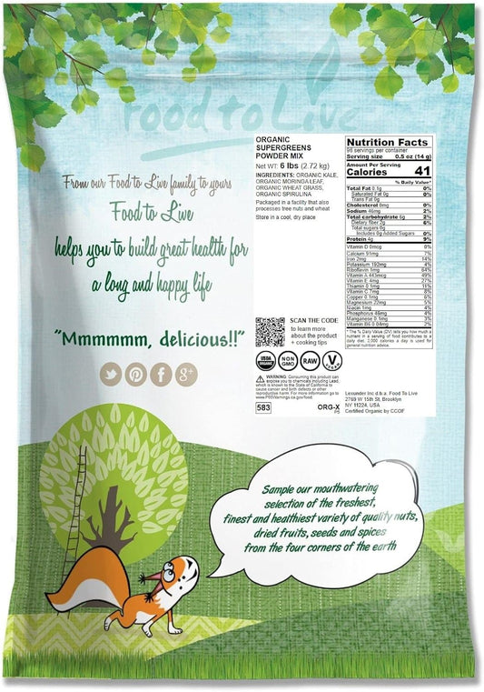 6lb Organic SuperGreens Powder Blend - Kale, Moringa, Spirulina, Wheatgrass - Non-GMO, Vegan, Antioxidant Rich - Juices, Smoothies, Baking